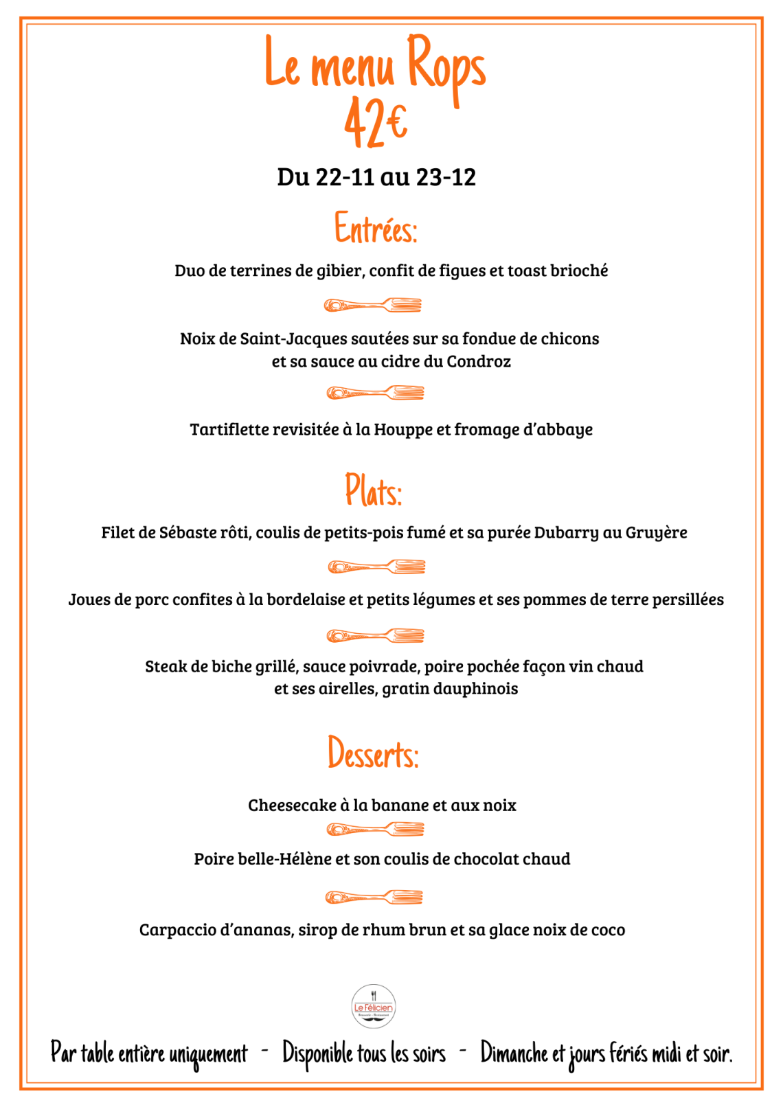 🍷 NOUVEAU MENU ROPS AU FÉLICIEN 🍷 Ce samedi soir, découvrez notre tout nouveau menu Rops… Un menu qui promet de belles surprises à chaque assiette ! 😋✨ 📞 Réservations : 081/39.53.23 On a hâte de vous accueillir !